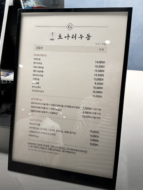 메인메뉴인 자루우동은 이미 완판되고 없었다.