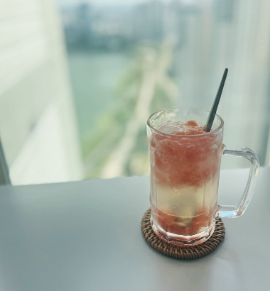 이렇게 햇살 좋은 날 바테이블에 앉아 바깥을 보며 자몽에이드를 먹어본다.